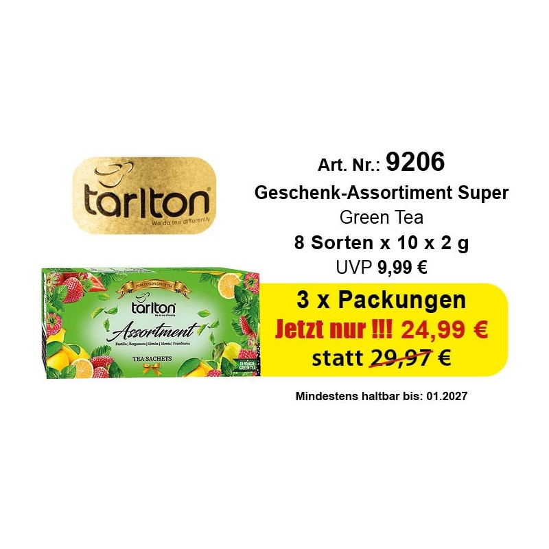 Angebot 3 x Tarlton Geschenk-Assortiment Super Green Tee 8 Flaver 8 x 10 x 2 Gr.