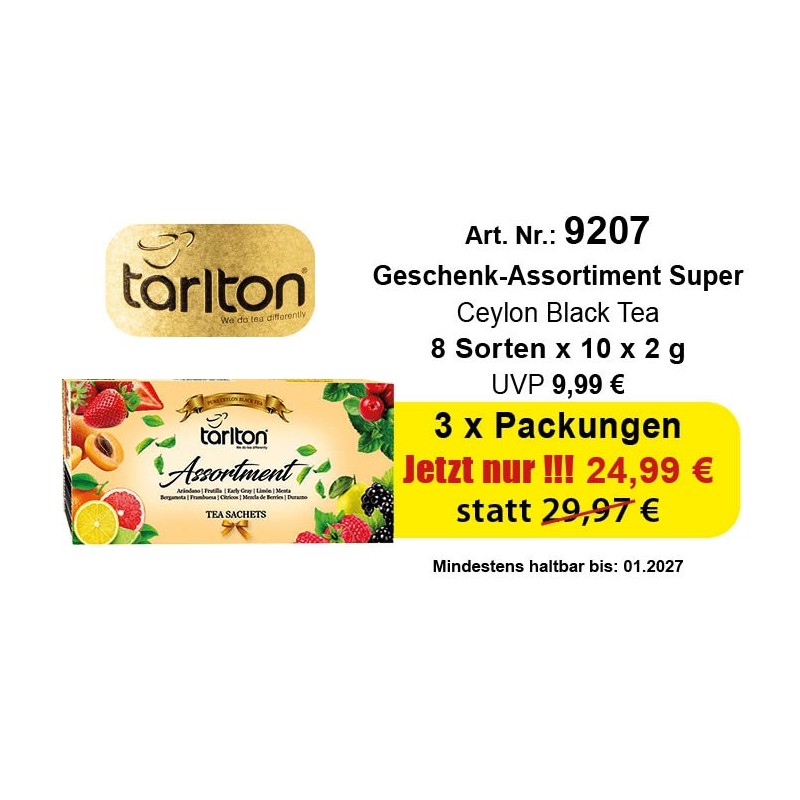 Angebot 3 x Tarlton Geschenk-Assortiment Super Schwarzer Tee 8 Flaver 8 x 10 x 2 Gr.